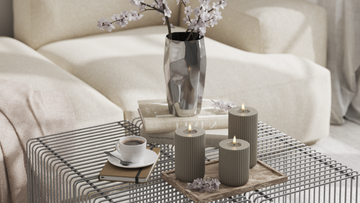 Για μια ήρεμη συνολική εντύπωση, μπορείτε να μαζέψετε τα φώτα σε ένα πιάτο και να διαφοροποιήσετε τα ύψη, διατηρώντας παράλληλα τα χρώματα στην ίδια παλέτα.