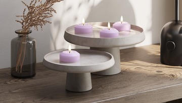 Valmistatud vaigukattega (wetlook) ja vastupidavast plastikust. Iga küünla mõõdud on Ø 6,1 x 4,0 cm.