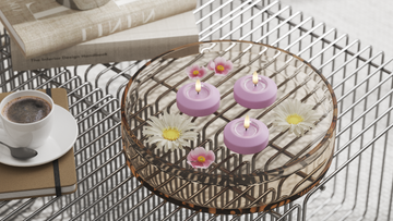 Asetage ujuvad küünlad kaussi, kus on vesi ja mõned rohelised oksad, et luua rahulik ja hõljuv ilme.