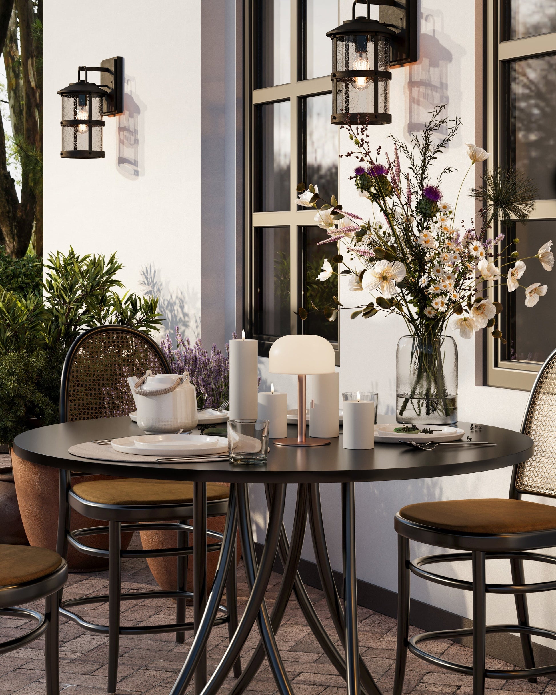 For et roligt helhedsindtryk kan du samle lysene på et fad og variere højderne, mens farverne holdes i samme palette.